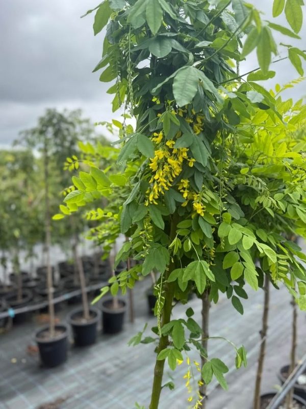 Laburnum ‘Vossii’ grows best in full sun and well-drained soil and is often planted as a feature tree, in cottage gardens, or trained over arches and pergolas to highlight its beautiful hanging flowers. Its elegant form and brilliant spring colour make it a popular ornamental choice for many landscapes.